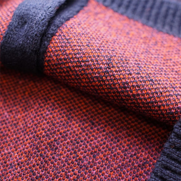 アクリル糸を5ゲージで編立、ダブルジャガード編みにし
