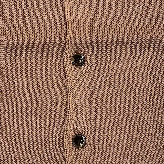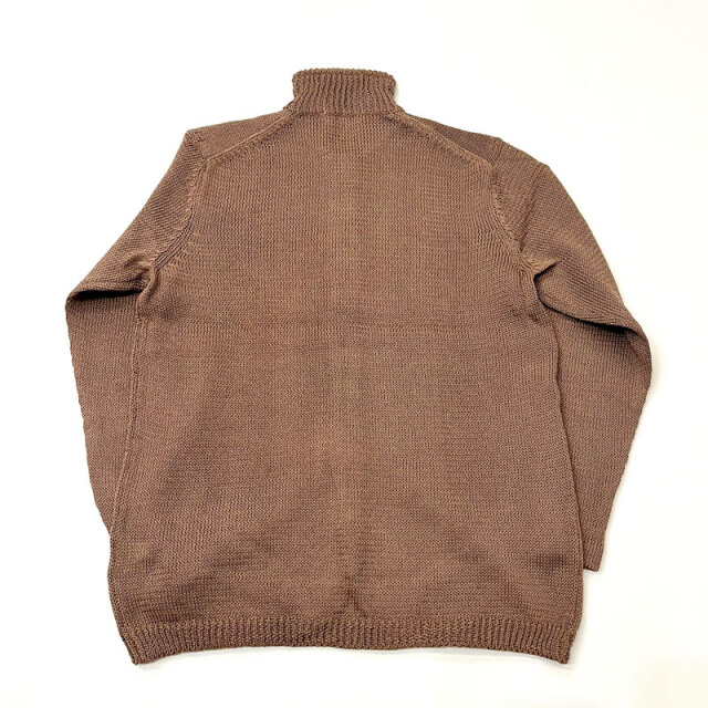 “擬麻加工”が施されたコットン糸を使用したローゲージのスタンドカラーカーディガン